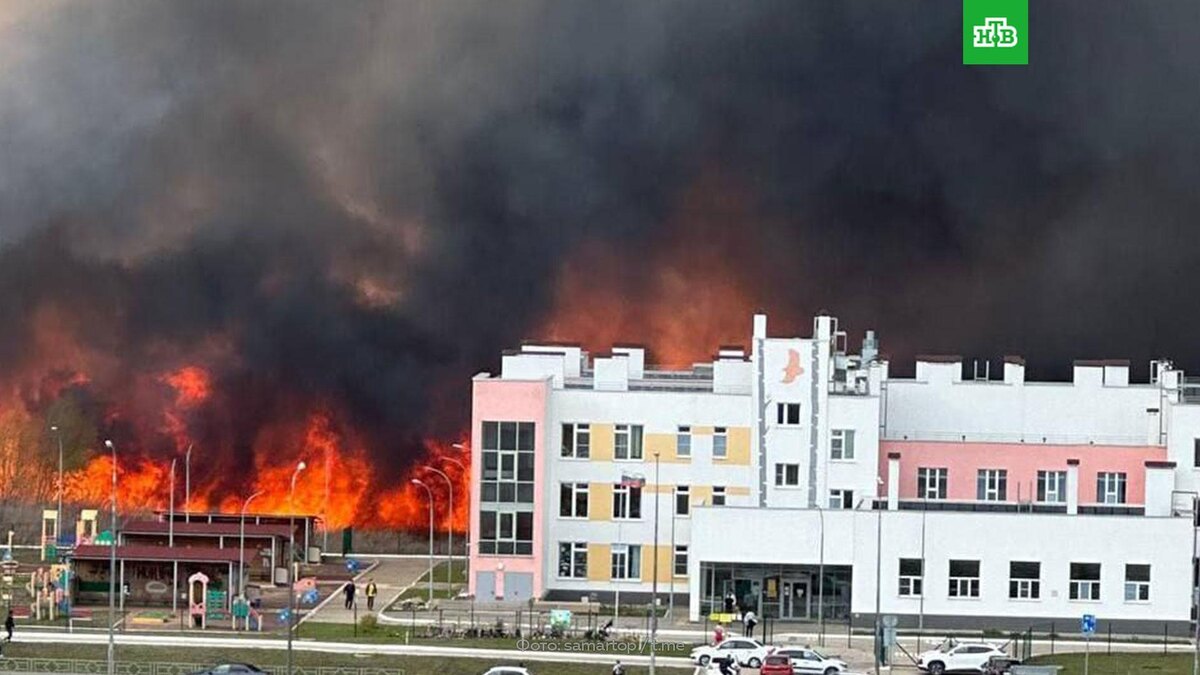 [ Смотреть видео на сайте НТВ ] В районе «Южного города» Волжского района Самарской области загорелся камыш, пламя вплотную подобралось к детскому саду и жилым многоэтажкам. Очевидцы сделали кадры с места ЧП. На них видно, как огромное пламя бушует рядом с детсадом и жилыми домами. В соцсетях пишут, что изначально пожар начался в полях, но из-за сильного ветра и теплой погоды пламя быстро перекинулось на соседние территории. В итоге огонь вплотную подобрался к детсаду, по данным МЧС, оттуда эвакуировали 336 человек. На месте работают более 50 пожарных и 16 единиц техники. [ Смотреть видео на сайте НТВ ]