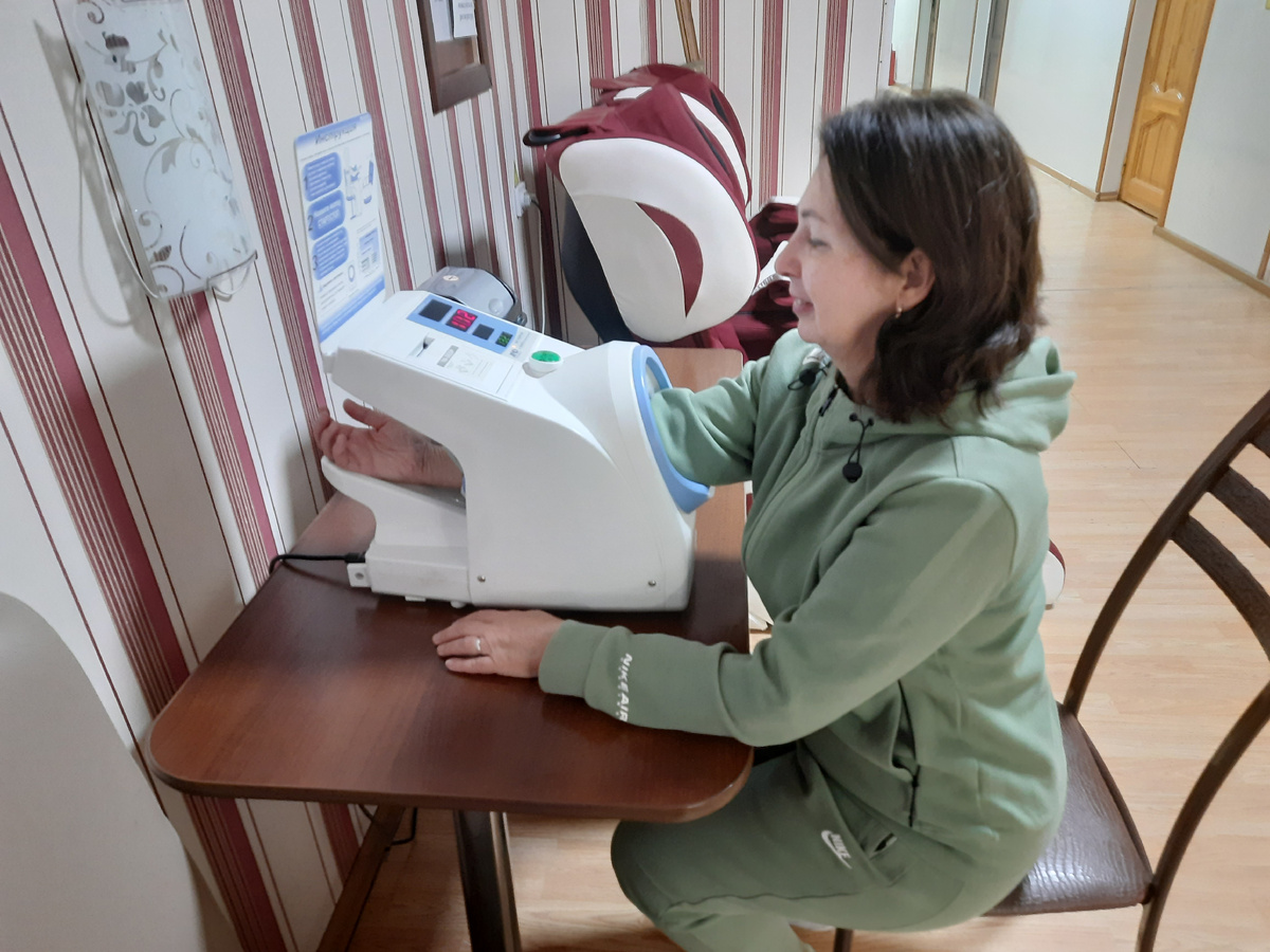 После вкусного обеда мы сначала решили померить свое АД. В санатории повсюду стоят современные измерители давления. В этот аппарат просто засовываешь руку, манжета автоматически сжимается и измеряется давление и пульс. После из аппарата выходит "чек" с результатом.