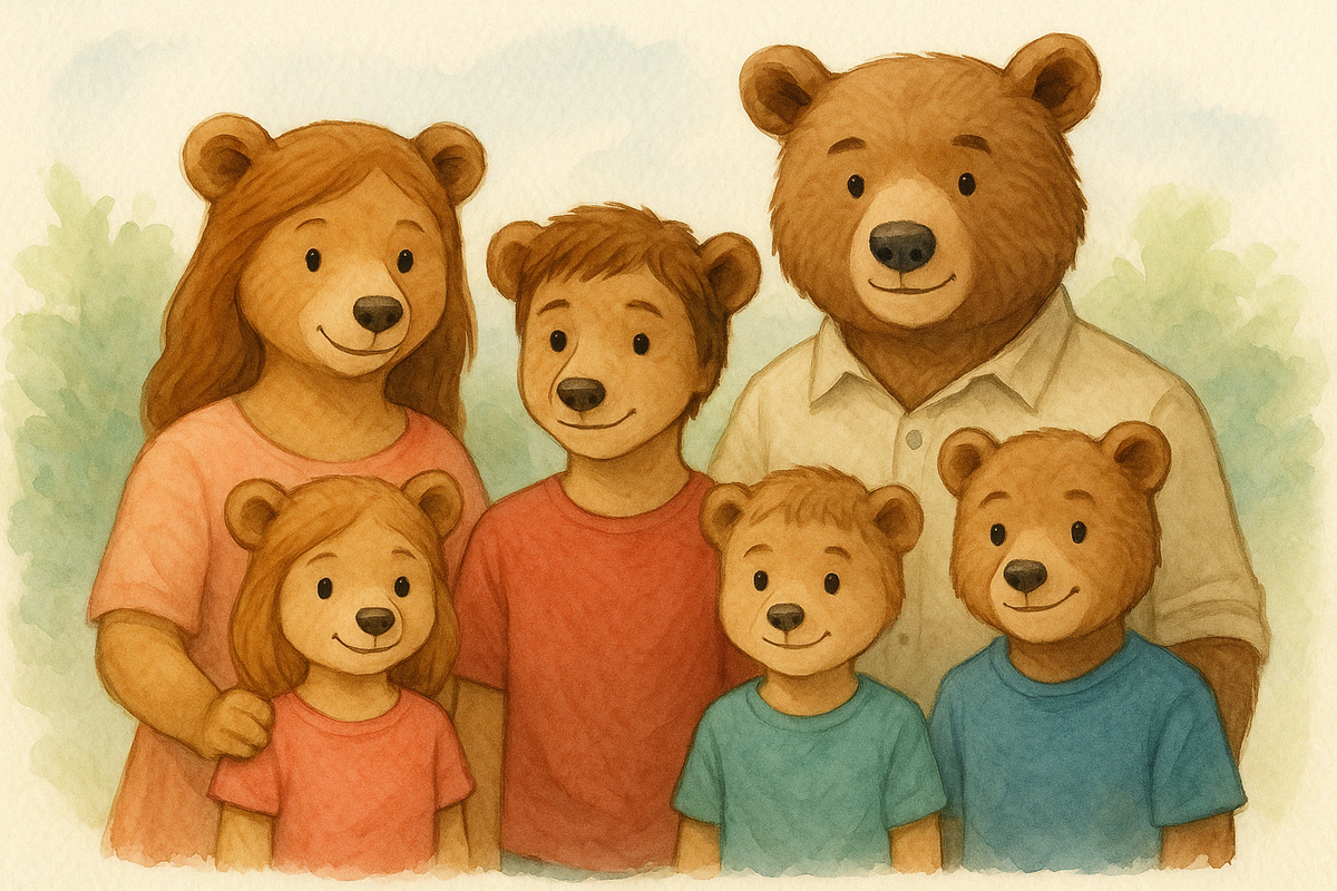 В одном лесу жила медвежья семейка. Медведь-папа рыбу ловил, медведица-мама ягоды собирала и мёдок припасала. Четверо ребят-медвежат подрастали на воле.
