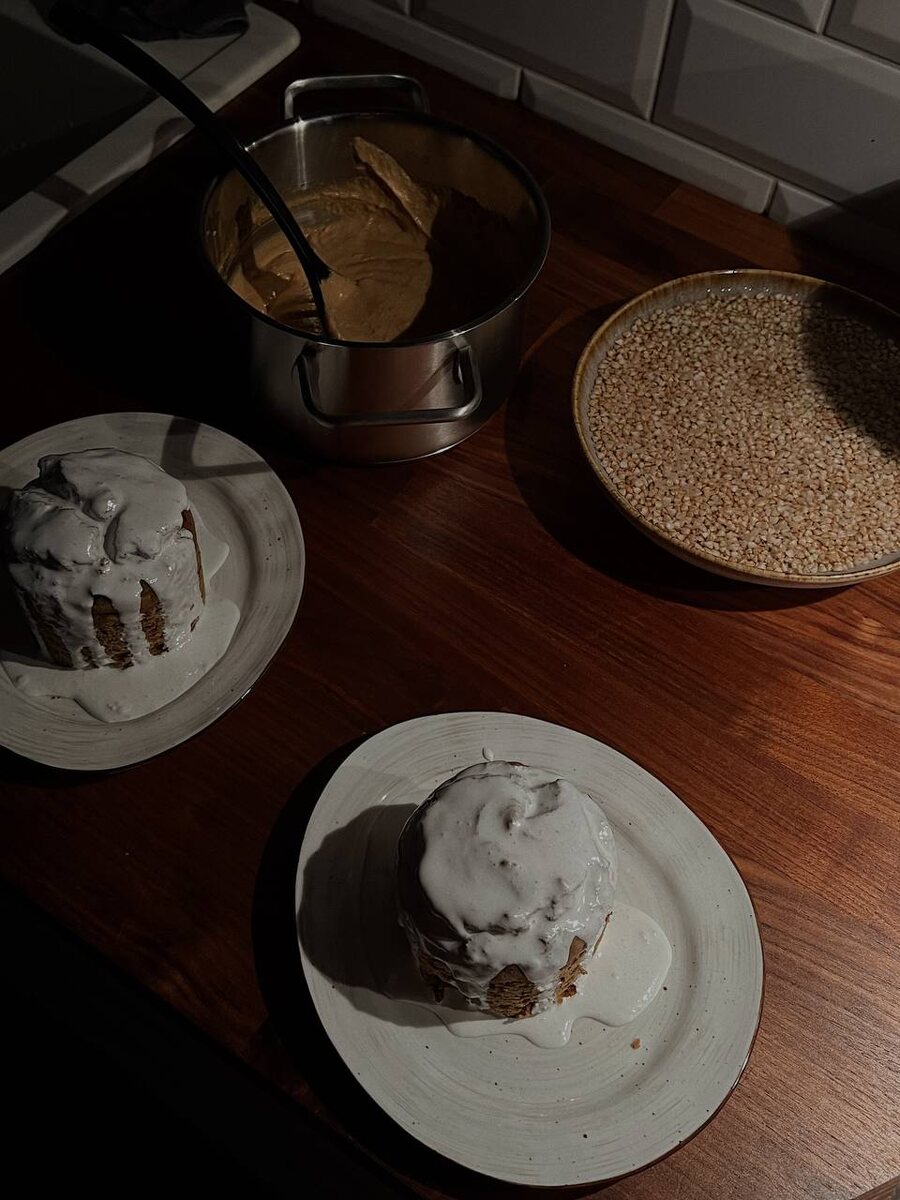 Кулич без бубна, дрожжей и паники Это не просто кулич. Это банановый хлеб в форме кулича — сочный, ароматный и вообще несложный. Ни тебе 3-х часов подъёмов теста, ни дрожжевого ритуала с молитвами. Только вкус и кайф. Ингредиенты: Жидкая часть: • 300 г бананов (примерно 2 спелых) • 2 яйца, взбитых • 4 ст. л. греческого йогурта • 3 ст. л. кокосового масла • 2 ст. л. лимонного сока Смешиваем всё это до однородности — можно вилкой, можно блендером, можно на расслабоне. Сухая часть: • 130 г цельнозерновой муки из кукурузы (можно заменить на любую) • ¼ ч. л. соли • ½ ч. л. соды • 1 ч. л. разрыхлителя • ½ ч. л. корицы Сухое к жидкому, аккуратно перемешиваем, чтобы не убить воздушность. Теперь — финики и грецкие орехи. Сколько? А прям щедро. На глаз, на вкус, по сердцу. Чем больше, тем вкуснее. Разливаем по формочкам. Выпекаем: • В разогретой до 180° духовке — 40 минут. • Потом ещё 10 минут при 160° — чтобы он красиво подрумянился и не пересох. Шапка: • Классическая глазурь: яичный б