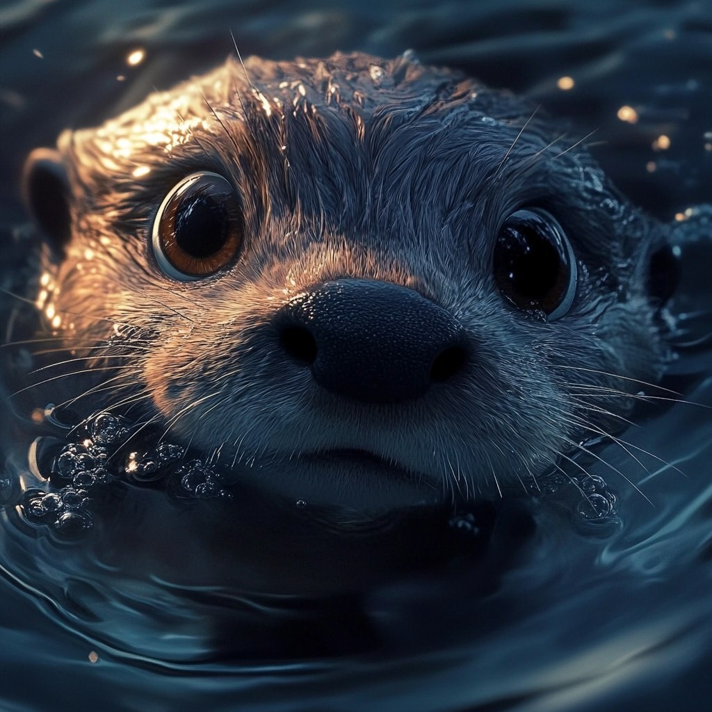 Создано на основе запроса: face of a little otter under the water, pixar style