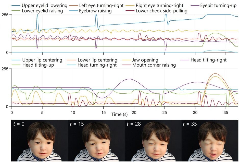 (Результаты: алгоритмы и роботы. «ХиЖ» 2025 №3) Мир опять увлечен человекоподобными роботами. Конечно, на первый взгляд иногда их можно принять за человека. Они могут улыбаться или хмуриться, демонстрировать другие эмоции, но наблюдать это человеку зачастую неприятно и тревожно. Дело в том, что в эмоциях робота нет естественного развития, поскольку для имитации мимики инженеры обычно используют так называемый лоскутный метод. Это значит, что мимические движения воспроизводят заранее прописанные для них сценарии с резким переключением между ними. И все же качественная автоматическая генерация выражений лица — принципиальное свойство коммуникационного робота. Поэтому группа исследователей Университета Осаки во главе с Ишихара Хисаси (Hisashi Ishihara) разработала новую технологию воспроизведения динамической мимики. Ученые применили давнюю и хорошо известную математикам идею Фурье о разложении любого сигнала на составляющие его волны. Эти волновые сигналы для «подкожных» электроприводов