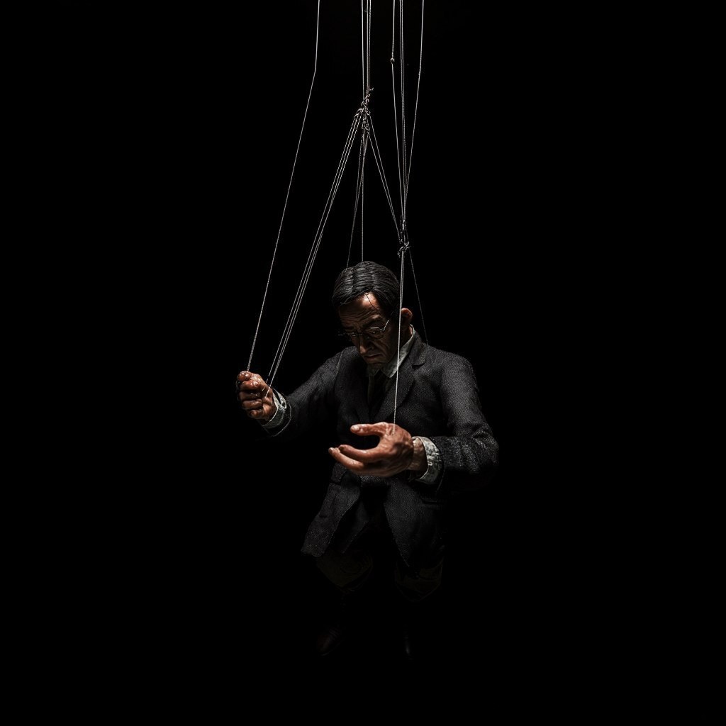 Создано на основе запроса: extremely detailed and realistic, total black background, puppet, manipulated man, confused and weak old man, a