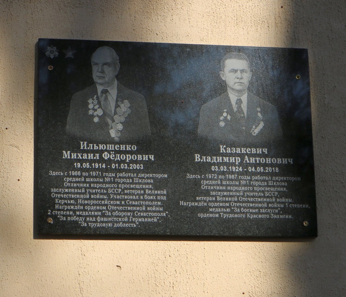 Память Михаила Ильюшенко глубоко чтится в Шкловском районе. 📜Ежегодно в Шкловском районном историко-краеведческом музее проходят краеведческие чтения памяти Михаила Ильюшенко. ✨В средней школе № 1 г. Шклова в 2021 году состоялось открытие мемориальной доски, посвященной двум педагогам, отдавшим не одно десятилетие своей жизни образованию Шкловского района – Михаилу Ильюшенко и Владимиру Казакевичу. #лицаПобеды #80_лет_ПОБЕДЫ