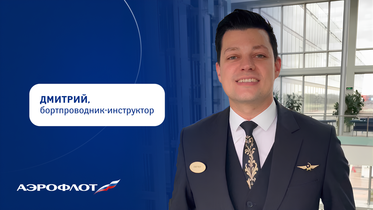 Всем привет! Меня зовут Дмитрий, и я — бортпроводник-инструктор авиакомпании Аэрофлот. Уже шесть лет нахожусь на данной позиции, налетал 2 500 часов и ввёл в строй 230 стажёров. Расскажу, в чём заключается работа бортпроводника-инструктора и какой путь нужно пройти, чтобы получить эту должность. С чего начинается карьера? Сегодня я лечу в Шанхай на Boeing 777, и в моей команде Вера — бортпроводник-стажёр на данном типе воздушного судна. На рейсе мы должны проверить её теоретические знания и потренировать их на практике. Досконально изучить конструктивные особенности борта и аварийно-спасательное оборудование, отработать навыки по технологической схеме движения, позаботиться о пассажирах — предложить весь спектр услуг и обеспечить максимальный комфорт. Так начинает работу каждый кандидат: сначала несколько тренировочных полётов в роли стажёра, а затем контрольно-проверочный рейс с инструктором — на нём человек уже получает допуск к самостоятельной работе. «Могу ли я стать бортпроводнико