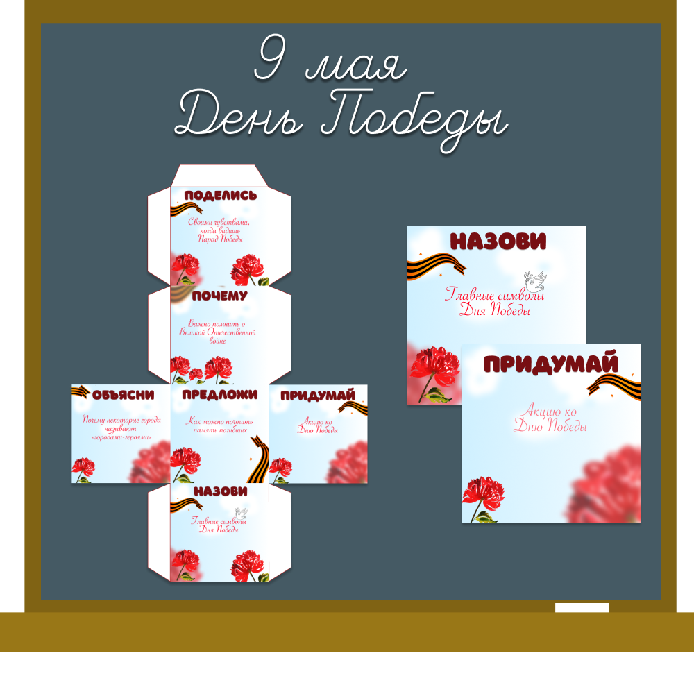 День Победы — это не просто дата в календаре. Это священный день, когда мы чествуем мужество и героизм тех, кто защищал нашу страну в годы Великой Отечественной войны. Для детей эта дата может быть сложной для понимания, но важно донести до них её значение. В своём телеграм-канале https://t.me/pervyi_zvonok делюсь кубиком Блума, как можно обсудить День Победы с детьми младшего школьного возраста. Чтобы понять, как говорить с детьми о Дне Победы, начните с простых вопросов: Эти вопросы помогут вам понять уровень осознания ребенка и откроют возможность для дальнейшего обсуждения. Для детей начальных классов лучше использовать адаптированные книги, мультфильмы и документальные фильмы, которые рассказывают о войне и ее героях в простой и наглядной форме. Например, можно предложить детям посмотреть мультфильм о медалях, или прочесть сказку о смелых солдатах. Обсуждая увиденное, вы сможете задать вопросы: «Что ты почувствовал, когда увидел этого героя?» Личные истории делают тему более близ