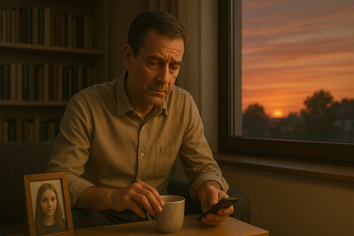 Когда связь прервалась, Сергей долго смотрел в окно, где вечерело. В стекле отражалось его усталое лицо с залегшими у глаз морщинками. За спиной был идеально убранный стол с единственной чашкой — его чашкой, с трещиной сбоку и выцветшим рисунком. Подарок дочки на прошлое Рождество.