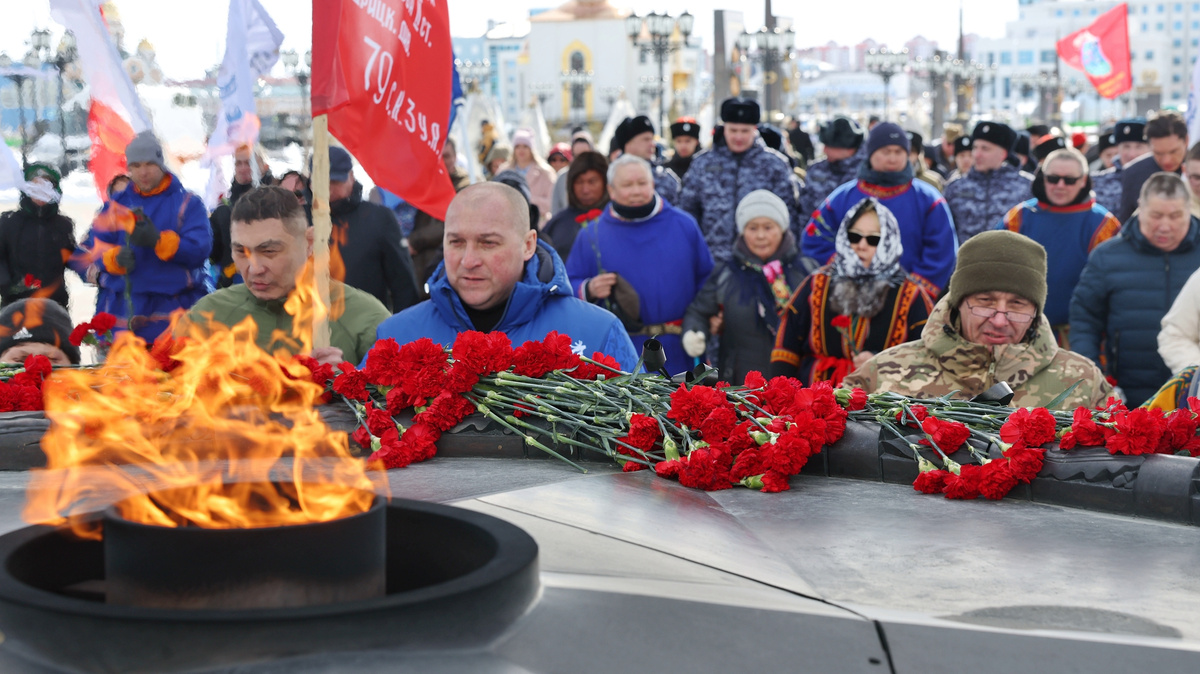 Заключительный этап патриотической акции к 80-летию Победы в Великой Отечественной войне состоялся в Парке Победы Города Трудовой доблести Салехард. Торжественным шествием Знаменная группа передала копию Знамени Победы ветерану боевых действий и участнику СВО Борису Шушакову. Участников «Арктической эстафеты Победы» приветствовал заместитель губернатора Ямало-Ненецкого автономного округа Сергей Климентьев. «Мы встречаем Знамя Победы на Ямале в знаменательный день – 16 апреля 1945 года началась Берлинская операция Красной Армии – завершающая битва Великой Отечественной войны. Впервые за эти 80 лет Знамя преодолело путь в 5,5 тысяч километров арктических территорий, напоминая о вкладе северных регионов в Великую Победу», – сказал Сергей Климентьев. Напомним, «Арктическая эстафета Победы» стартовала 17 марта в Анадыре и завершилась 16 апреля в Салехарде, охватив 24 населенных пункта и стойбища оленеводов в четырех арктических регионах: Чукотке, Якутии, Красноярском крае и Ямале. В п