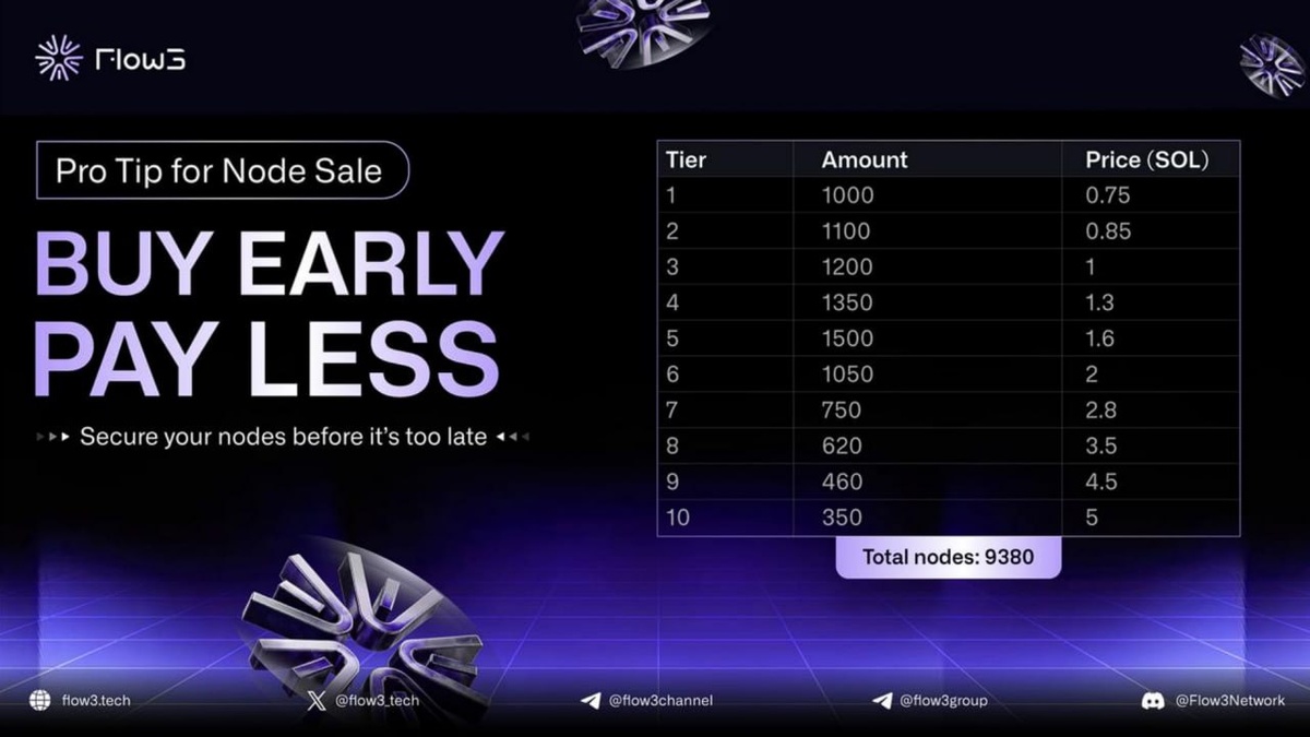 В ответ на пост #Flow3 🔄 Flow3: Уникальный шанс войти в раннюю фазу 💡 Сегодня в 17:00 МСК стартует распродажа нод Flow3 — последний шанс приобрести одну ноду в рамках анти-FOMO!😀 Белый список уже закрыт, теперь доступен лишь открытый слот. Подробности: ➡️ flow3network ❓ Что такое Flow3? Flow3 — это не просто блокчейн-решение. Это инфраструктурный слой для всего Web3, который позволяет пользователям контролировать свою цифровую идентичность и использовать её в любом приложении. Специализация проекта — токенизированные цифровые права, приватность и совместимость с DID (децентрализованными ID). 🎚 Проект ставит своей целью стать основой Web3-экономики, где каждый пользователь будет получать вознаграждение за вклад в экосистему: будь то трафик, поведение или репутация. 😳 Почему важно участвовать? 🟢 Ранний вход — максимально выгодная точка входа по цене 🟢Участие в построении Web3-экосистемы с ориентацией на конфиденциальность и гибридную идентичность 🟢Команда активно развивает п