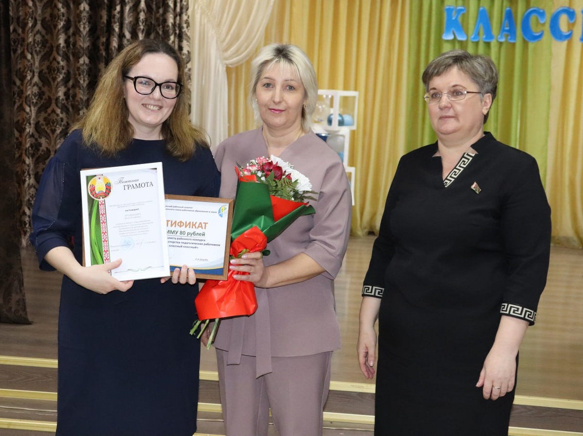 💫💫💫 Финал районного конкурса профессионального мастерства «Самый классный классный». Конкурсанты представили свои визитные номера «Потому что КЛАССНЫЙ руководитель!» и видеоролики «Секреты классного руководителя». В заключительном испытании начинающие педагоги Несвижчины задали финалистам вопросы, стремясь узнать их секреты успеха. 🏆 По итогам всех конкурсных испытаний победу одержала Ксения Андреевна Тишевич, учитель физики и информатики СШ №4 г. Несвижа, классный руководитель 5 «А» класса. Дипломом II степени награждена Анастасия Дмитриевна Голяк, учитель начальных классов СШ №4 г. Несвижа, классный руководитель 3 «Г» класса, Дипломом III степени — Элла Юрьевна Чанкина, учитель начальных классов СШ №3 г. Несвижа, классный руководитель 3 «Б» класса. Все участники финала награждены Почетными грамотами управления по образованию, спорту и туризму Несвижского райисполкома, а также им вручены денежные сертификаты от районного комитета Белорусского профсоюза работников образования и нау