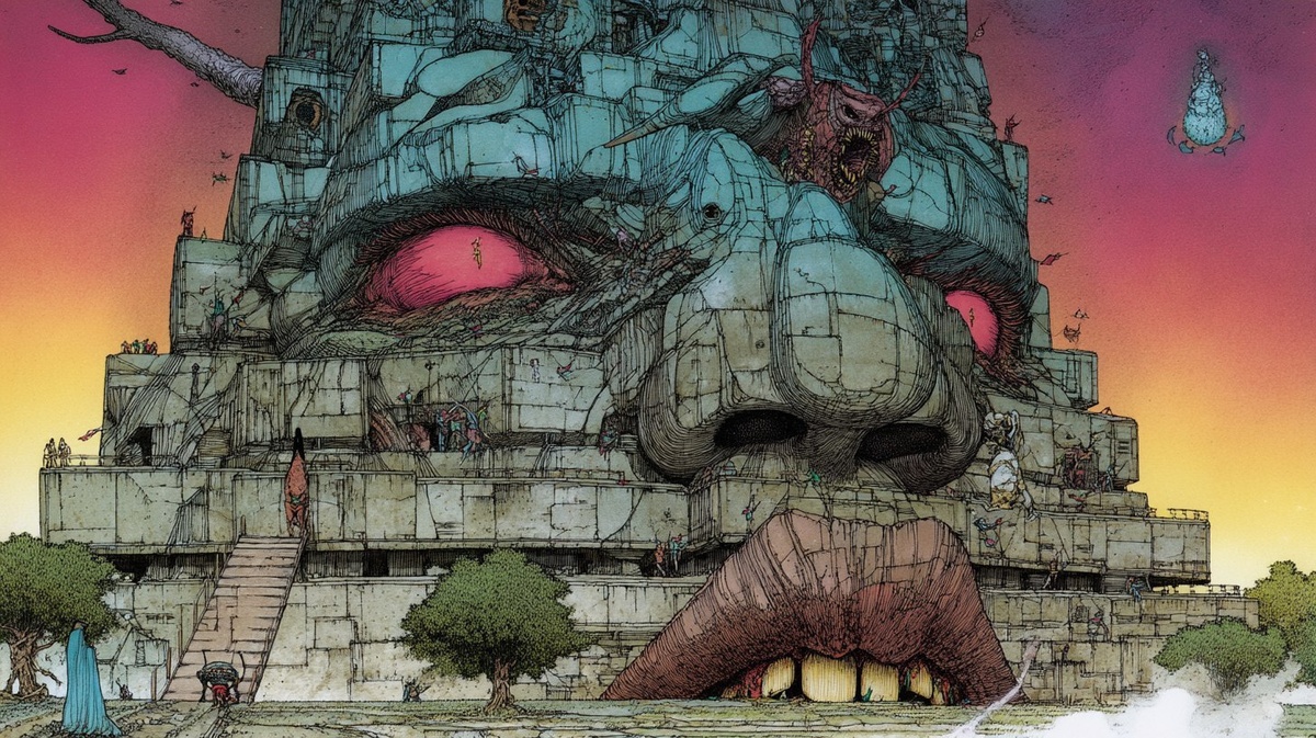 Создано на основе запроса: brutal brutalist brutalcore yokai, by Moebius