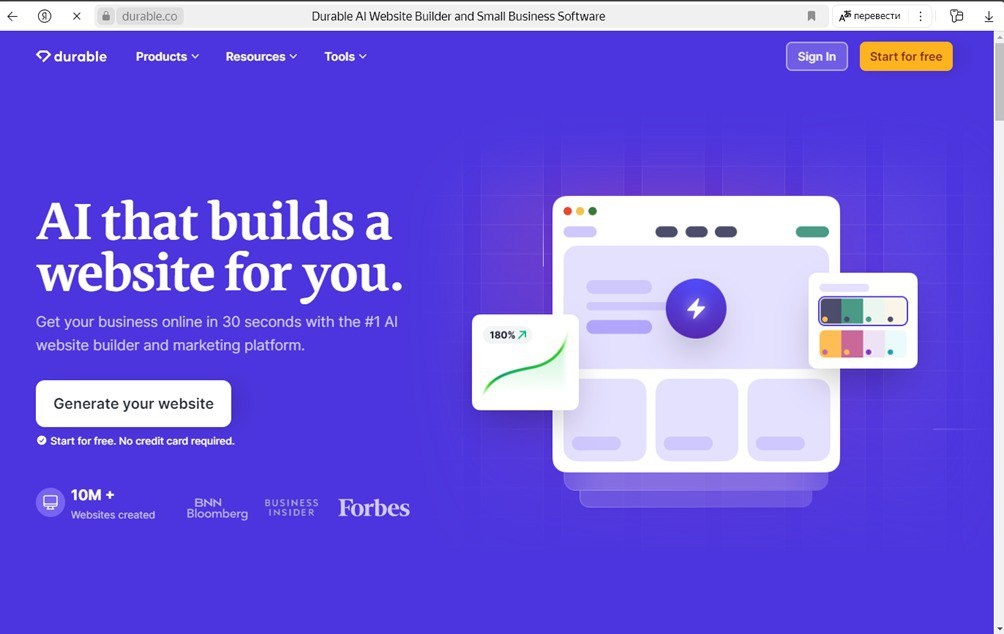 Дизайн своего сайта всего за пару минут – Фишки #Программ Недавно я наткнулась на сервис Durable.co, который позволяет создавать веб-сайты довольно быстро и без особых усилий. Это интуитивно понятная платформа, использующая алгоритмы искусственного интеллекта для разработки сайтов. Процесс достаточно простой: вы заполняете короткую анкету о своем проекте, указываете необходимые функции и настраиваете внешний вид вашего сайта. Достоинством Durable.co является возможность получить готовую структуру сайта всего за несколько кликов. Такой инструмент может быть полезен для малых бизнесов, стартапов или фрилансеров, которым нужно быстро создать свое онлайн-присутствие без необходимости в глубоких знаниях программирования и дизайна. #ПолезныеСсылочки PocoLab.ru