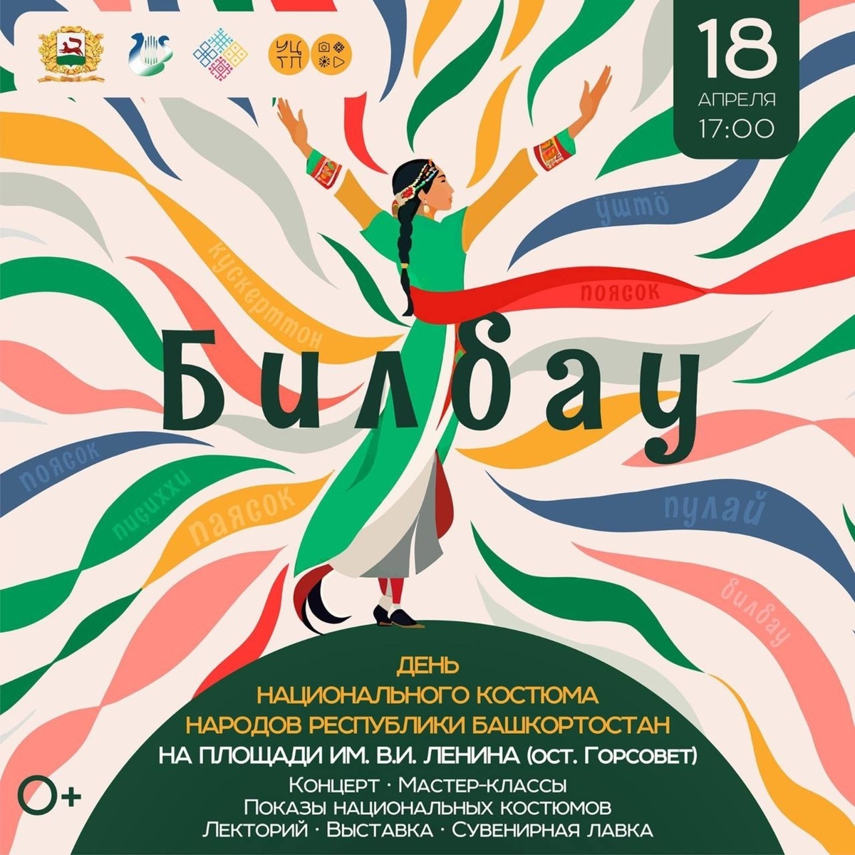 18 апреля в 17:00 на площади имени В. И. Ленина (остановка «Горсовет») состоится грандиозное мероприятие «Билбау», посвященное Дню национального костюма народов Республики Башкортостан.