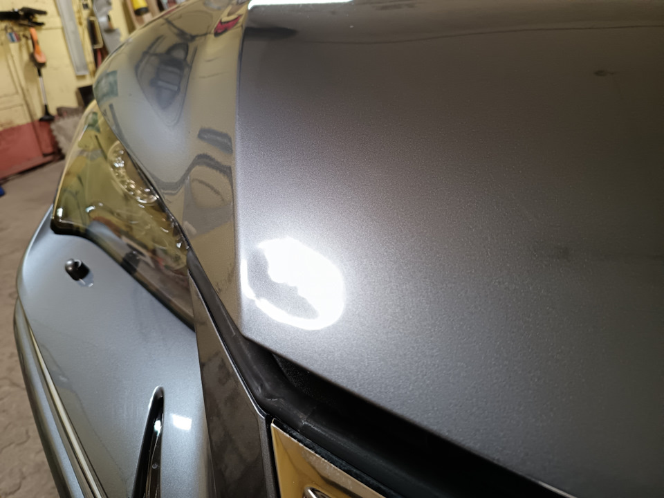 На капоте автомобиля какой -то "нехороший человек" сделал вмятину. В зоне повреждения деформировался металл. н краска не пострадала. Значит это "наш случай"! Ведь мы как раз специализируемся на этом! А именно — Вместо рихтовки, шпаклевания и окраски, деликатно выравниваем металл и сохраняем при этом краску. Вот и тут мы взяли машину в работу. Выправили железо, краску сохранили на 100% В конце ремонта отполировали зону работы. Машина снова "не битая не крашеная" срок ремонта 2,5 часа. Владельцы довольны.
