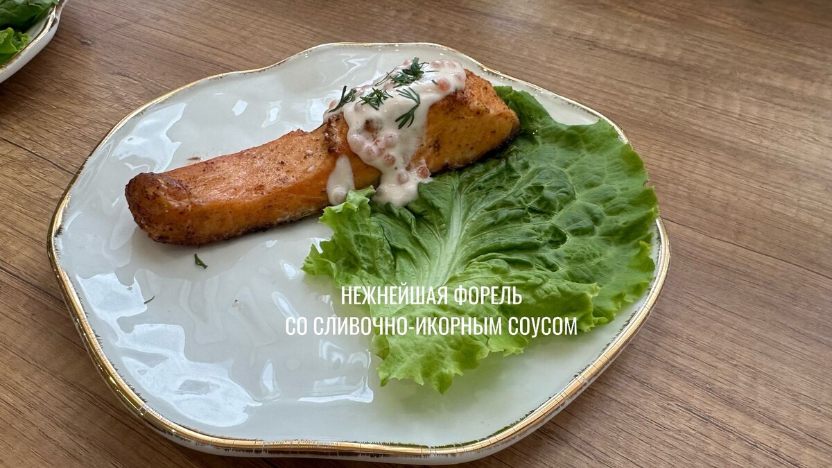 СПИСОК ИНГРЕДИЕНТОВ на 4 порции: 1кг форели МАРИНАД: • 2 ст.л. растительного масла • 1 ст.л. сока лимона • 1 ч.л. соли • 1/2 ч.л. белого перца • 1/2 ч.л. сладкой паприки СЛИВОЧНО-ИКОРНЫЙ СОУС: • 400 г сливок (20%) • 60 г сливочного масла • 40 г растительного масла • 1 ст.л. муки (15 г) • 2-3 зубка чеснока • 1 ч.л. лимонного сока • 1/2 ч.л. соли • 1/4 ч.л. белого перца • 70 г красной икры ПОШАГОВЫЙ РЕЦЕПТ: Для начала приготовим маринад для форели. В небольшую миску выливаем растительное масло и лимонный сок, высыпаем соль, белый молотый перец и сладкую паприку. Все хорошо перемешиваем до полного растворения соли в лимонном соке. Этим маринадом будем смазывать рыбу. Я использую стейки форели с кожей без чешуи и косточек. Рыбу будем запекать в духовке, для этого нам понадобится противень, который необходимо застелить специальным ковриком, фольгой или пергаментной бумагой. Смазываем рыбу маринадом со всех сторон, делаем это на противне. Для этого рецепта лучше всего подойдет любая жирная