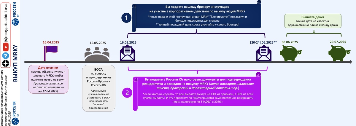 В выкупе смогут поучаствовать те, кто будет держать MRKY в портфеле на конец дня 16 апреля 2025 г. В этом случае с учетом Т+1 MRKY отразится на депо 17 апреля 2025 г. - это и будет фиксацией списка.