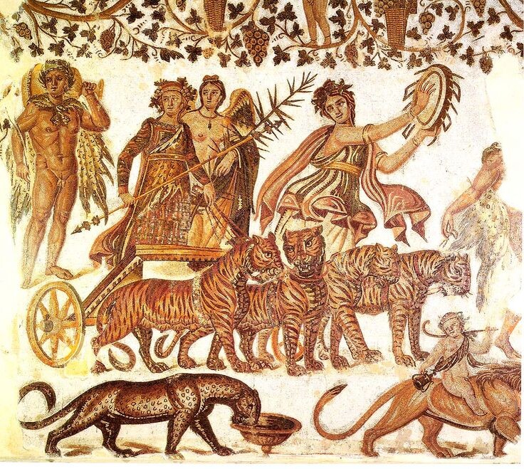 Как и обещала в первом посте на эту тему, продолжаю показывать подборки фотографий из разных музеев мира, на которых изображены мозаики римско-византийского периода. Ссылка на предыдущий пост (а там внизу поста еще две ссылки на публикации по теме мозаик) будет внизу этого текста. Сегодняшней темой будут панно с большим количеством персонажей, среди которых всякая живность. Как ручная, так и дикая (читай - злая). Например, вот тут прямо уйма всяких кошачьих. Четверка тигров вызывает вопросы: правда и чудеса дрессуры или так, выдали желаемое за действительное? Вот, к примеру, еще один любитель ездить на крупных котиках. Правда, он - бог. Дионисом звали. Мозаика выставляется в Греции. Написано "город Делос". Еще один небожитель. Эрос. Что-то лопает прямо из ведра. У тигра - грива, ога. Вот оно же полностью, это отдельная картина, а не фрагмент большой: Интересен "кантик" с масками. Что там еще, кроме масок и кто? А вот тут среди прочих животных есть экзотический крокодайл. У нас в Бе