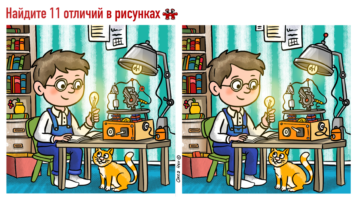 Тест для самых внимательных: сможешь найти 11 отличий на этих картинках? Ребенок-изобретатель.