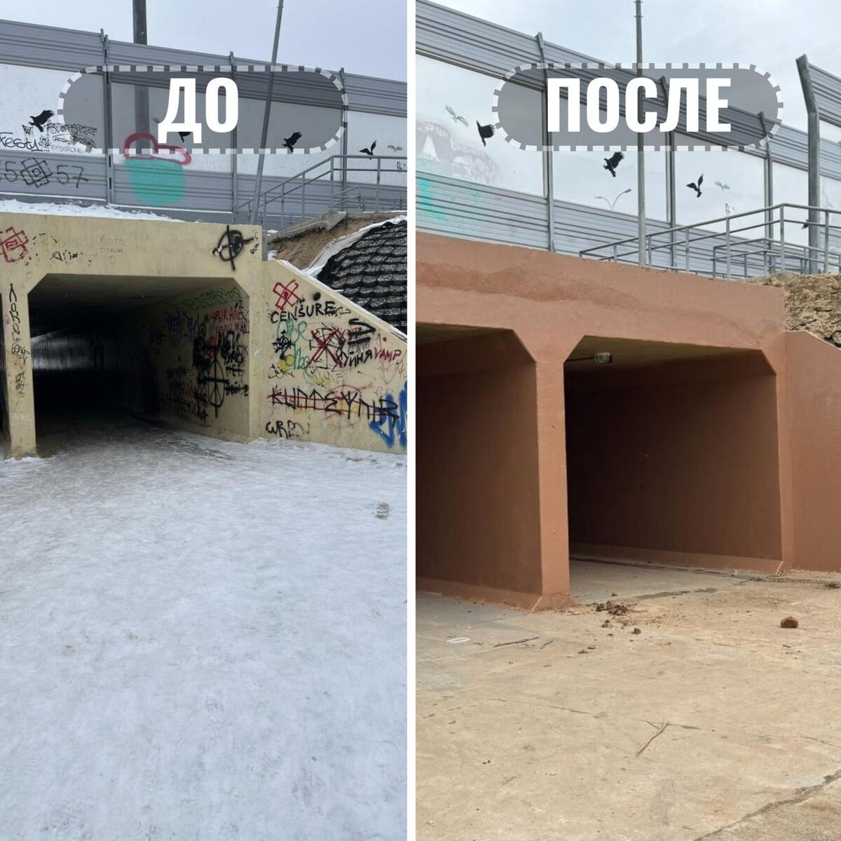 Сотрудники коммунальных служб очистили от последствий уличных вандалов еще одно место. На этот раз участок магистрали Кирова-Строителей в Йошкар-Оле. После того, как рабочие отмыли от грязи и граффити защитные ограждения, был обновлен подземный переход под дорогой: покрашены стены и отремонтировано освещение. 📸 Фото: мэрия Йошкар-Олы