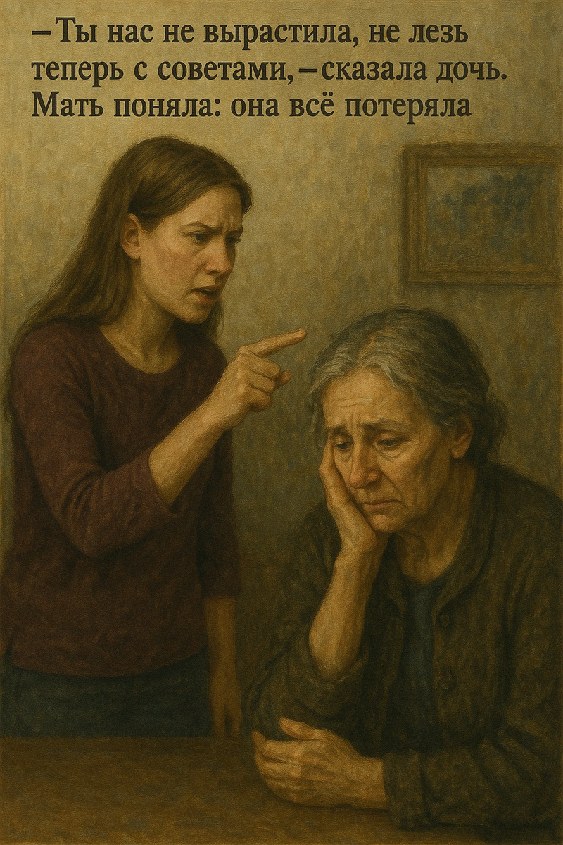 — Сомневаюсь. Мать — это та, кто растит, переживает, возится с уроками, обнимает, когда страшно, и стремится быть рядом, а не уезжает в другой город. Ты нас не вырастила, не лезь теперь с советами.
