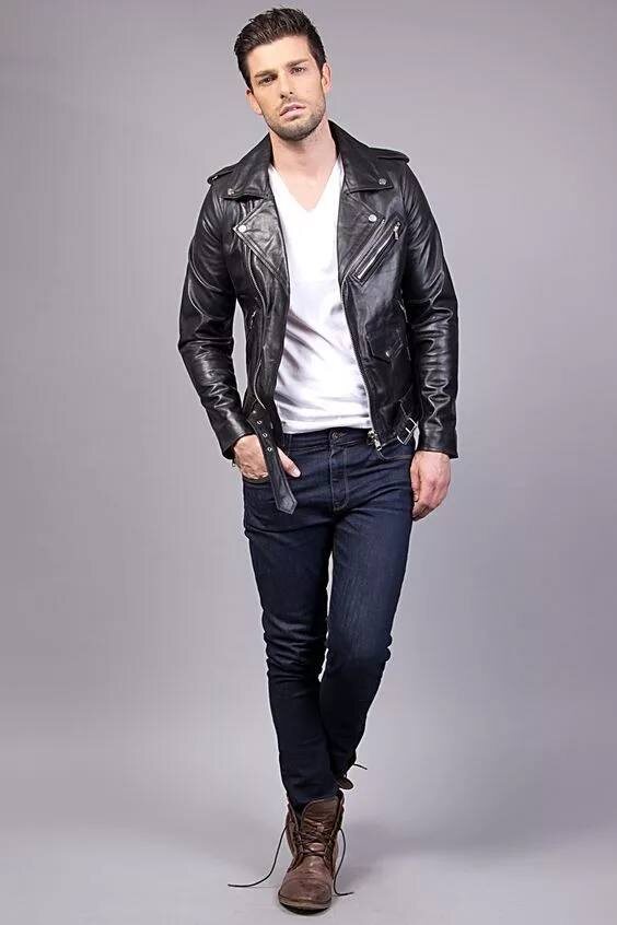 На фото ниже — типичные образы среднестатистительного мужчины в нашей стране. По нашим наблюдениям, примерно 70% мужчин в городах одеваются именно так. Возможно, дело в привычке: с детства синий цвет считается «мужским», а черные кожаные куртки и бомберы — символом мужественности. В итоге большинство не задумывается о выборе одежды, и все выглядят одинаково. А ведь сегодня доступно столько интересных вариантов — грех ограничиваться таким скучным набором! Если хотите выделиться и добавить образу индивидуальности, попробуйте эти простые способы: 1. Меняем верхнюю одежду Черная или синяя куртка — не единственный вариант. Попробуйте заменить ее на худи, стильную жилетку, пальто или тренч (особенно актуально в холодное время). Также можно поэкспериментировать с первым слоем: вместо простой футболки — рубашка, лонгслив или даже свитер с V-образным вырезом. 2. Отказываемся от джинсов в пользу других брюк Джинсы — это удобно, но не всегда стильно. Попробуйте чиносы, слаксы, джоггеры или карго.