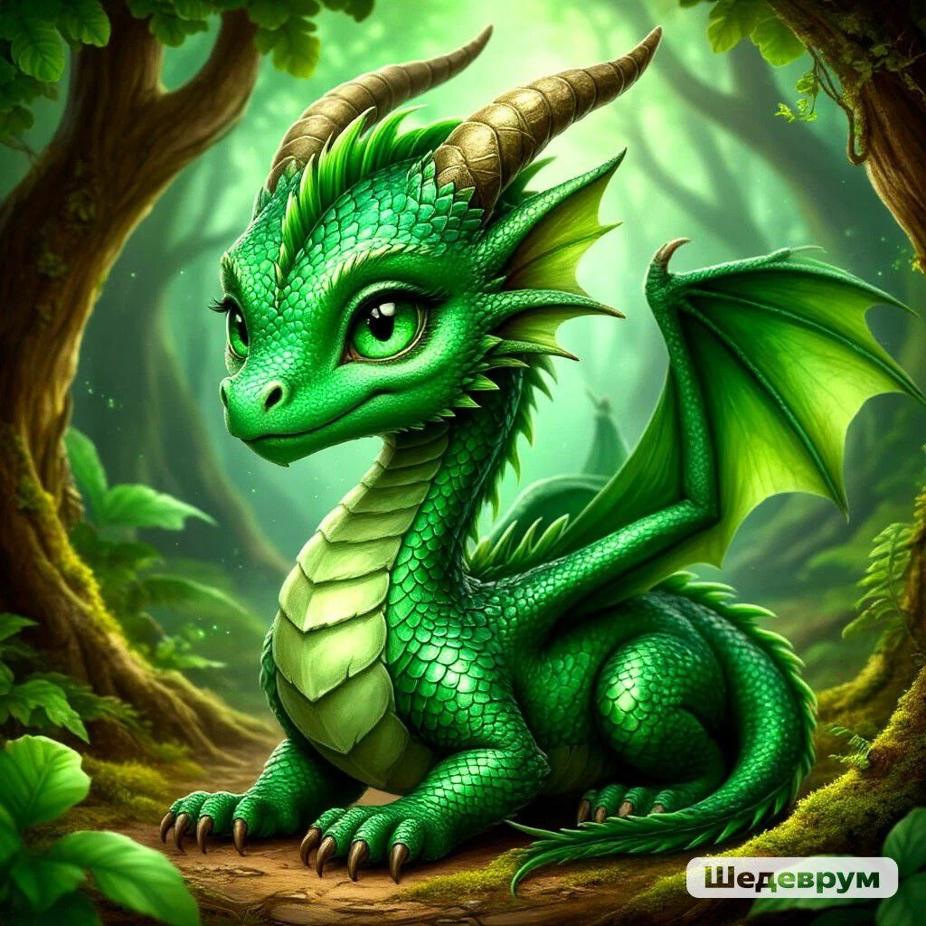 Дракоша Дарлина была самой красивой и доброй дракошей во всем волшебном лесу. Изящные зеленые чешуйки покрывали ее тело, а ее изумрудные глаза сверкали, как самые ценные камни.