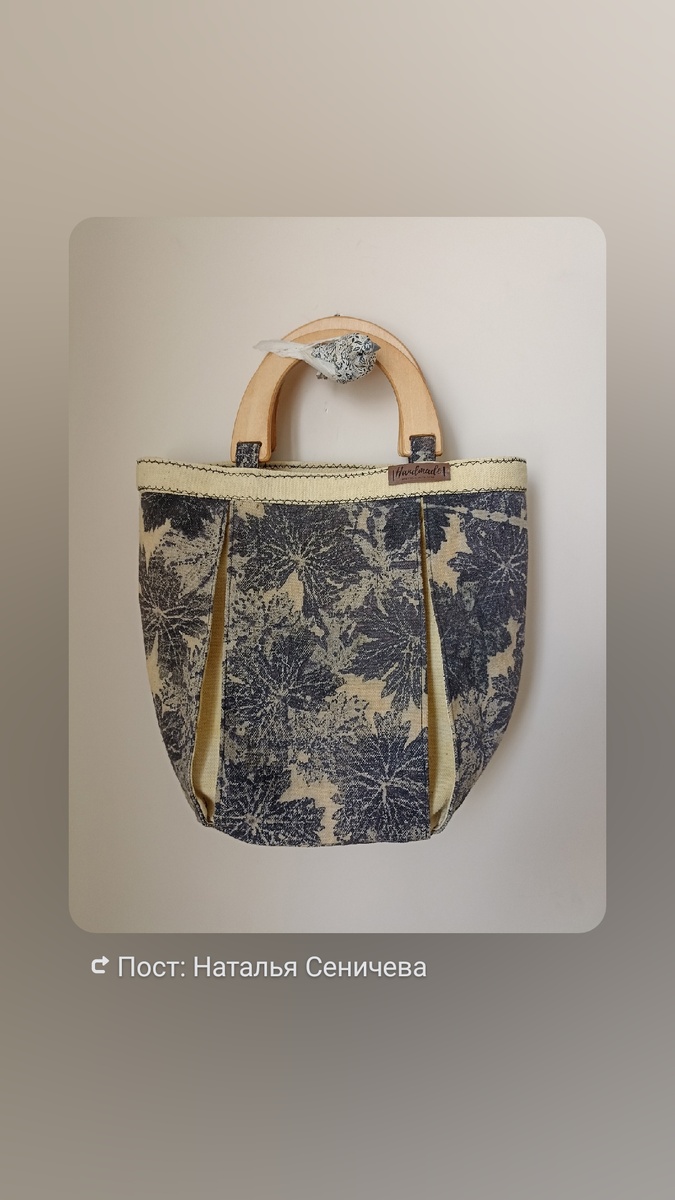 Весна, солнышко, распускаются деревца. Среди них - красавица берёзонька. Молодые листики берёзоньки, которая является одной из самых красивых деревьев не Планете, окрасили тканюшку. Белоствольная берёзонька издавна считается символом России с её сильным Духом и неиссякаемой Любовью открытого сердца. Берёзонька- это молодость, обновление и очищение. Энергия берёзоньки помогает быть гибкими, способными жить при любых условиях и оставаться верной себе. Лето. Цветёт герань луговая. Листики герани луговой (с древнегреческого-журавельник) также красивы и нежны как и молодые листики берёзоньки. Они оставили свои образы на тканюшки сумки. Журавельник- это красота и нежность, растущее счастье и процветание. Собраны листики в чистых лугах и лесах Подмосковья, Софрино. Здесь присутствуют дух свободы и раздолья. Здесь чистый воздух, щебечут птички, прыгают по деревьям белочки, гнездятся утки, «топают" ежики, муравьи строят свои огромные дома. Здесь Живой Дом и здесь, по преданию, этими тропами п