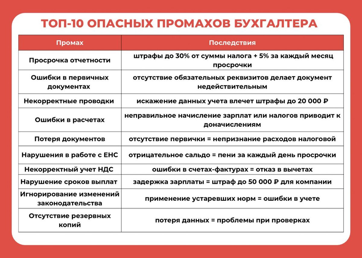 🤔 Кто в ответе за финансы? Обязанности бухгалтера в 2025 году Бухгалтер — это «финансовый стержень» компании: от его работы зависят зарплаты, налоги, отчетность и даже репутация бизнеса. Но что именно входит в его обязанности? Эксперты Главбух Ассистент разобрали все детали: ✅ Для малого бизнеса — один специалист ведет всё: от первички до отчетов в ФНС. ✅Для крупных компаний — целый отдел с разделением обязанностей. ✅Главбух в 2025 году — не только учет, но и электронный документооборот, налоговое планирование и защита от штрафов. Но даже опытные специалисты допускают ошибки. ТОП-10 опасных промахов показали в карточке⬆️ Как избежать проблем? Ответы читайте в статье » #ГлавбухАссистент_блог #ИП #Кадры #Налогииотчетность #НДФЛ #ООО #проверкибизнеса #страховыевзносы #ФНС #аутсорсинг 📈 Налоги для предпринимателей: про налоги простым языком