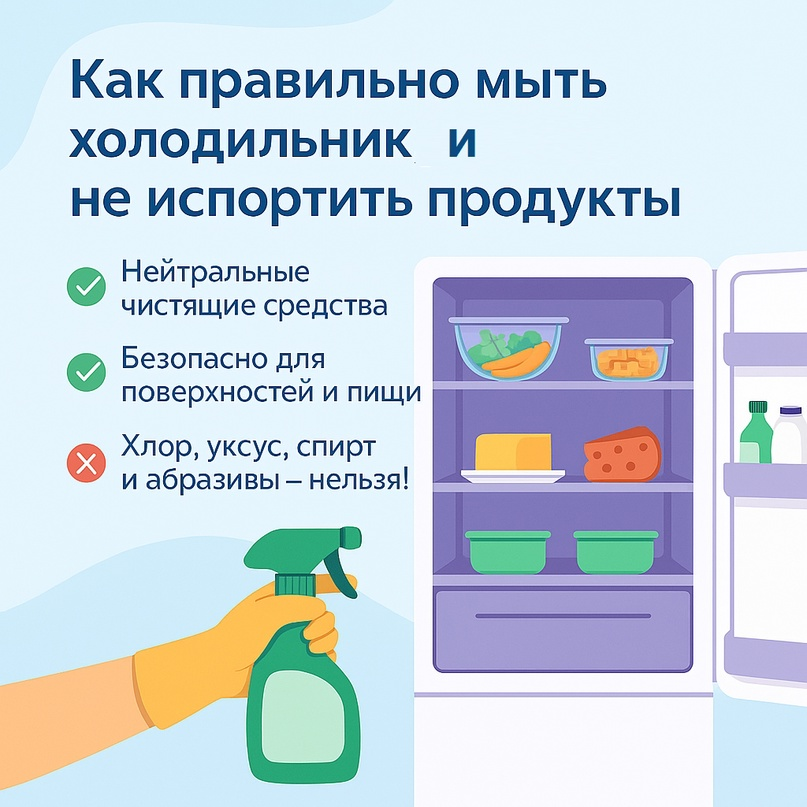 Что нельзя наносить на полки и какую ошибку совершают 8 из 10 пользователей В холодильнике хранятся не просто продукты, а биологически активные вещества с собственной микрофлорой. И то, чем и как вы обрабатываете камеру, может напрямую повлиять на их качество и безопасность. Особенно если речь идёт о свежих овощах, молочной продукции или открытых упаковках. Почему важен правильный выбор средства? Полимерные поверхности (полки, контейнеры, дверные лотки) холодильников чаще всего изготавливаются из АБС-пластика или полистирола. Эти материалы чувствительны к агрессивным ПАВ, особенно к анионным с высокой щёлочностью. 🚫 Что нельзя использовать: ✅ Что можно использовать: Многие пользователи обрабатывают холодильник, не отключая его от сети. Это создаёт две проблемы: 📌 Выключайте холодильник минимум на 15 минут до начала мойки Как использовать: Мы занимаемся производством бытовой и профессиональной химией. Больше информации в VK https://vk.com/varhim