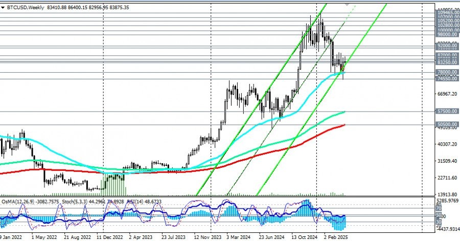 https://basechop.ru/wordpress/?p=38789 Криптовалютный рынок продолжает находиться под давлением внешнеполитических и экономических факторов. Инвесторы сохраняют осторожность, и, до тех пор пока риторика администрации США остаётся жёсткой, а неопределённость — высокой, рынок вряд ли вернётся к устойчивому росту, предположили мы в нашем сегодняшнем фундаментальном анализе и обзоре «Крипторынок: под давлением на фоне риторики Белого дома». Пара же BTC/USD на момент публикации данной статьи торгуется вблизи отметки 84000.00, лишь ненамного ниже отметки 85000.00, через которую проходит ключевой уровень сопротивления (ЕМА200 на дневном графике). Ниже этого уровня цена остается в зоне среднесрочного медвежьего рынка, что, учитывая также общую динамику цифрового рынка и фундаментальный фон, создает предпосылки для дальнейшего снижения. Пробой же важного краткосрочного уровня поддержки 83250.00 (ЕМА200 на 1-часовом графике) и сегодняшнего минимума 83028.00 может стать в этом случае сигналом д