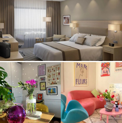 Тезис номер один: Есть некоторая условная шкала эмоциональности интерьера от "никакого" до "дофаминового". Первый любят делать строители и недорогие гостиницы, в них все ровненько, бежевенько, проверенные решения, выверенные сочетания (синие шторы? Значит и подушка синяя и никак иначе; ромбы на стекле дверей? обои значит тоже с ромбами) и выглядят они до зевоты скучно. А есть интерьеры, где каждая вещь появляется, чтобы дарить эмоции. Там может появиться неожиданный цвет и фактура, потому что совершенно не ясно как жить дальше без вот такого на ощупь стула, этих невероятных мебельных ручек в виде стрекозы и штор такого немыслимого оттенка. И не так важно, как они смотрятся вместе, важно что обожаюобожаюобожаю. И еще дискошар, пожалуйста, чтобы солнечных зайчиков пускал. Тут уж зависит от вкуса и чувства гармонии того, кто интерьер собирает. Оговорюсь, что вообще и то, и другое ни хорошо, ни плохо, зависит от поставленных задач, но при начале ремонта эту шкалу надо бы держать в голове