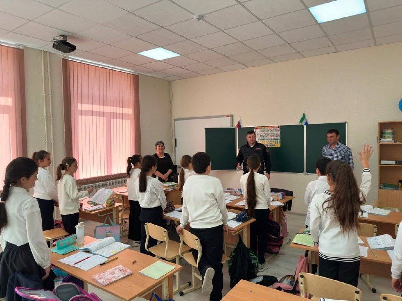 ♀️ Сотрудники Госавтоинспекции ОМВД России по Терскому району провели классный час по ПДД для учеников начальных классов средней школы с.п. Хамидие. Автоинспекторы напомнили ребятам о правилах перехода проезжей части дороги, разобрали возможные «дорожные ловушки», в которые может попасть пешеход, отметив, что прежде чем начать движение, необходимо убедиться в отсутствии транспорта и только после этого переходить проезжую часть. Полицейские объяснили ребятам значение основных дорожных знаков для пешеходов, рассказали о сигналах светофора, сделали акцент на то, как правильно выбрать безопасный маршрут от дома до школы. Кроме этого, полицейские объяснили ребятам, как влияет на безопасность пешеходов использование световозвращающих элементов в темное время суток. ️ Во время занятий ученики с интересом участвовали в беседе, решали различные дорожные задачи, задавали полицейским множество вопросов и рассказывали, как они вместе со своими родителями изучают правила дорожного движения.