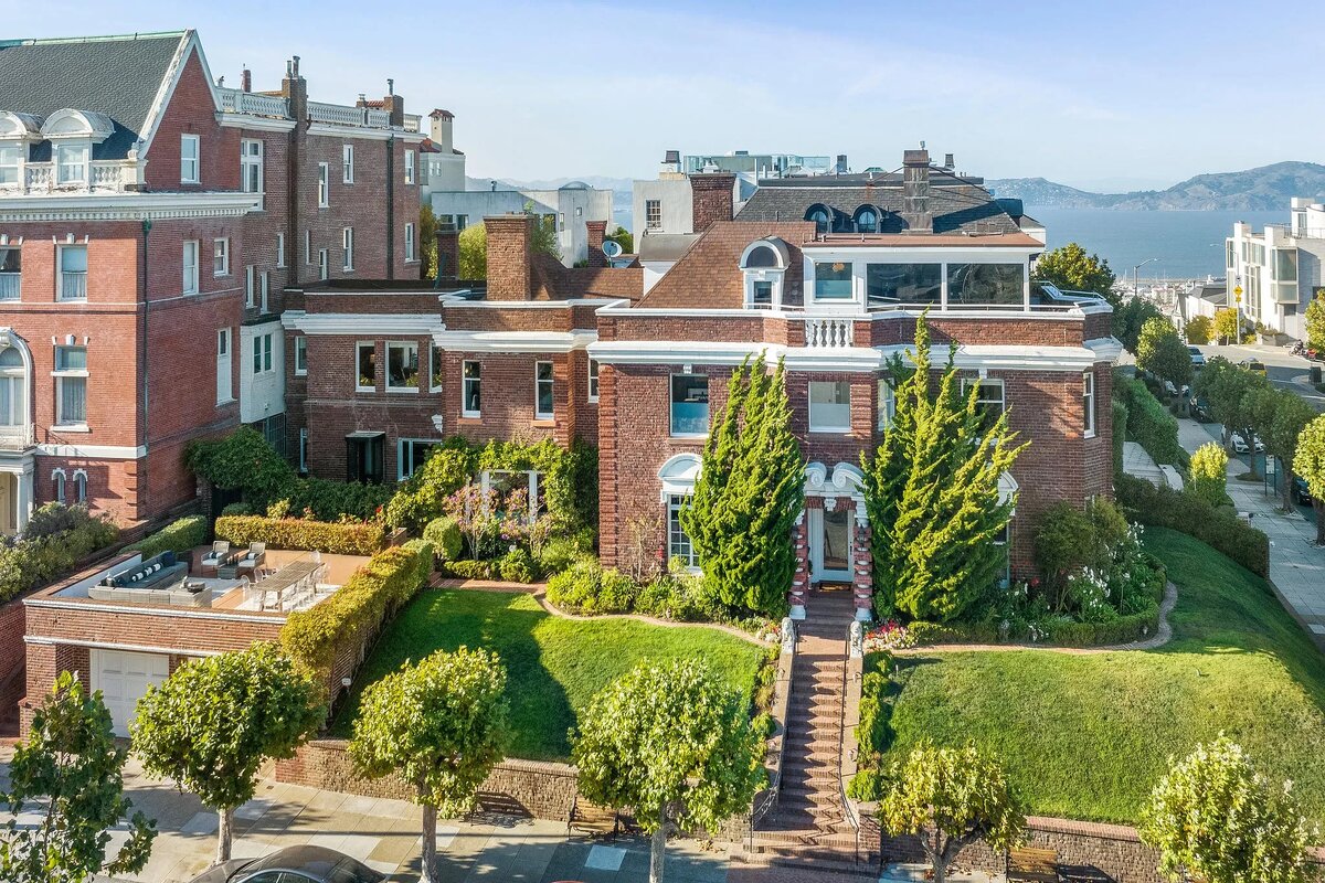 Верхний Пасифик-Хайтс. Плоская вершина холма. Вид на залив, настолько кинематографичный, что хочется прищуриться. Здесь, среди особняков с историей, возвышается один из самых выдающихся домов Сан-Франциско. Построенный в 1899 году по проекту архитектора Эрнеста Коксхеда, он стал воплощением архитектурного театра, где каждая комната играет свою роль. Вход в дом словно пролог к спектаклю: гравированные стеклянные двери ведут в драматичное фойе с лестницей и мягким светом, играющим на лепнине. Но все внимание перетягивает французский салон — редкая, почти музейная гостиная, перевезенная из самой Франции. Потолок из венецианской штукатурки, камин из мрамора и двери, ведущие в сад, делают это пространство не столько жилым, сколько сценой, где когда-то могли звучать вальсы и звенеть бокалы. По другую сторону от салона — торжественная гостиная с высокими окнами, изящной лепниной и столовой в эркере. А чуть дальше — основная парадная столовая с резным потолком и паркетом «елочкой», столь торж