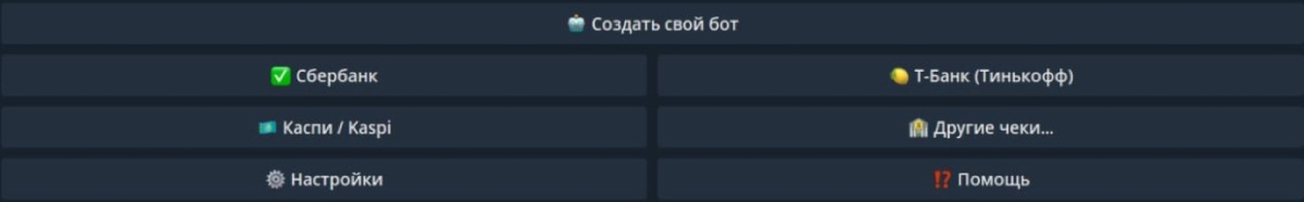 @Телеграмм бот – это многофункциональный Telegram-бот, позволяющий всего за несколько шагов создать визуальные копии чеков различных платёжных систем. Помимо Сбербанка, бот поддерживает такие сервисы, как Т-Банк, QIWI, YooMoney, Kaspi, Альфа-Банк, Binance, CryptoBot и другие. В боте представлены разнообразные шаблоны чеков и квитанций. Пользователи также могут воспользоваться разделом с пользовательскими шаблонами, чтобы подобрать подходящий формат под конкретный банк или платёжную платформу. Некоторые используют его в развлекательных целях — например, чтобы разыграть друзей, создав фальшивый чек в шутливом контексте. Также он может быть полезен в ситуациях, когда необходимо продемонстрировать "оплату" в ответ на подозрительные запросы — например, от потенциальных мошенников. Процесс не требует специальных навыков — бот автоматически формирует изображение по введённым данным.