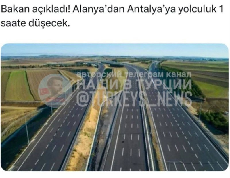 🇹🇷С АНТАЛЬИ ДО АЛАНИИ МОЖНО БУДЕТ ДОЕХАТЬ ЗА 1 ЧАС Министр транспорта объявил о строительстве новой автомагистрали между Антальей и Аланьей. Проект сократит время в пути вдвое — с двух часов до одного. По словам министра Абдулкадира Уралоглу, трасса усилит туристический поток и оживит экономику региона. 📌 Подписывайся на TurkeyNews Следим за новостями Турции