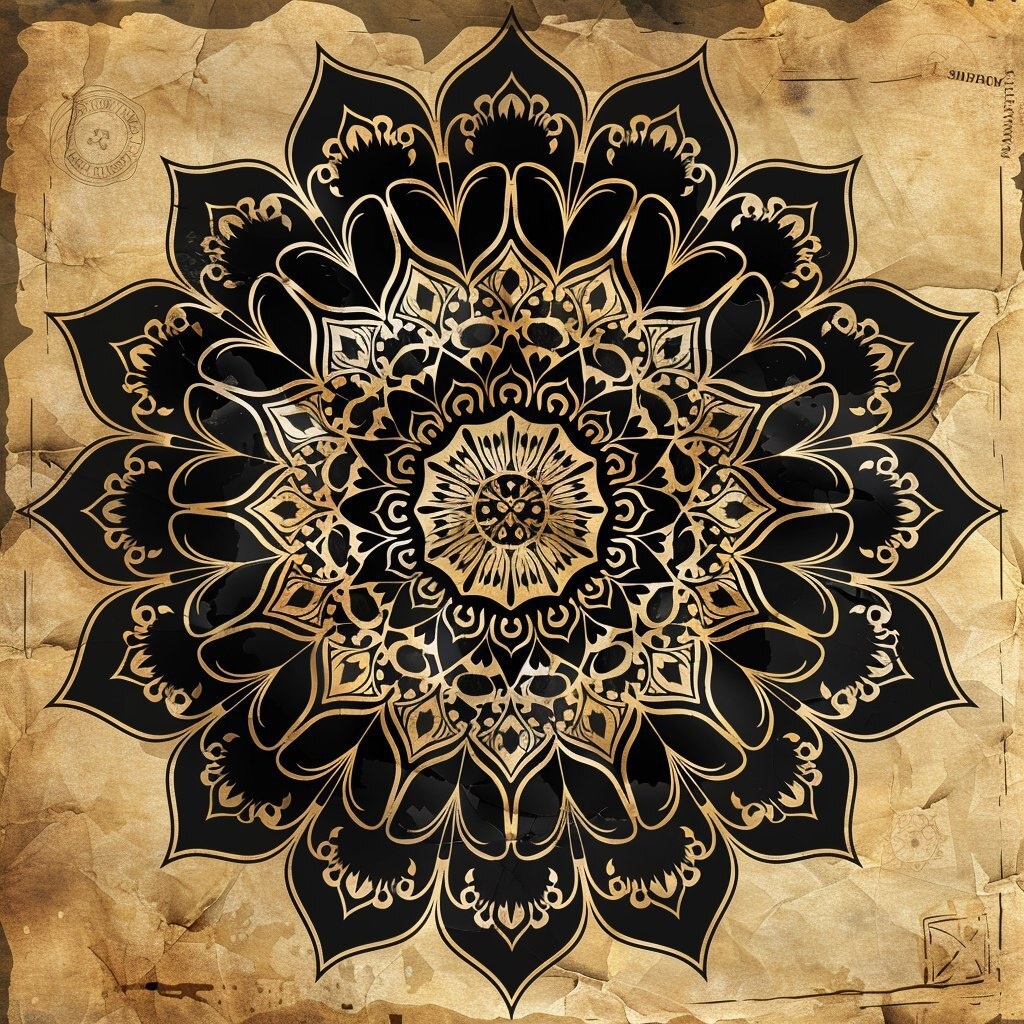 Создано на основе запроса: pattern, mandala, blackround old paper Круто вышло? 🤔 https://dzen.ru/id/65c0c65c86e4f837c27b24d7 #ИИ #AI #нейросеть #midjourney #art