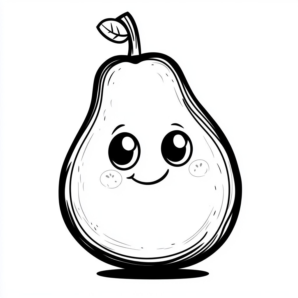Создано на основе запроса: Kids Coloring page, a cartoon avacado , black outline, white background, thick lines, no shading, Cartoon style