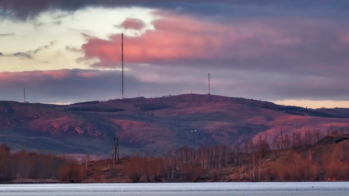 Холодный апрельский вечер прибыл по расписанию. Тёмная вода отражает небо, природа будто замерла в ожидании. А над этим всем — закат в нежных тонах, словно из другой реальности. Телевышки наблюдают за представлением молча. Возможно, передают сводку: весна опять где-то задерживается. Или просто стоят. Пейзаж для неспешных размышлений о вечном и качестве сигнала.
