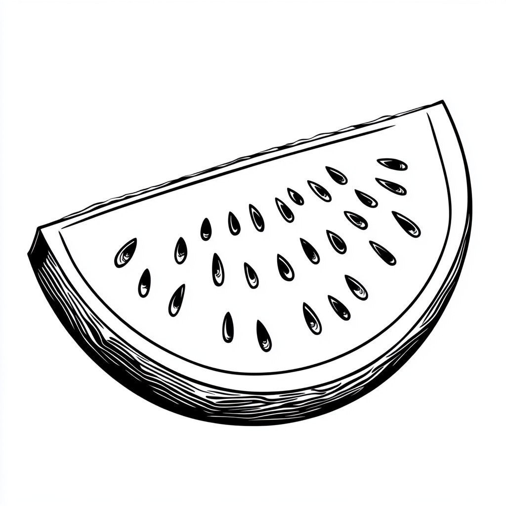 Создано на основе запроса: Kids Coloring page, a cartoon watermelon slice, black outline, white background, thick lines, no shading, Cartoon