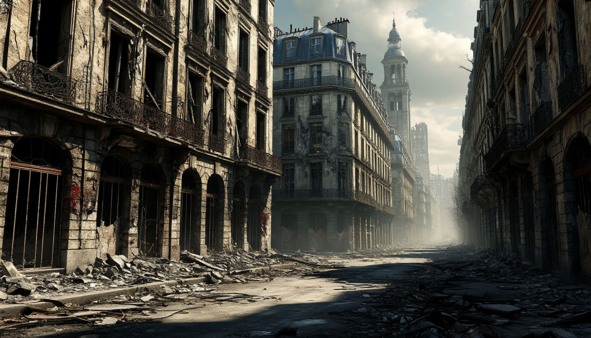 Глава 3. Тени былого Три дня пути. Три дня, за которые мир вокруг становился всё мертвее. Дорогу им преградила река — точнее, то, что от неё осталось. Русло высохло, оставив после себя лишь трещины в земле, похожие на шрамы. — Здесь раньше был мост, — сказала Лира, указывая на железные балки, торчащие из земли, как рёбра великого мертвеца. Виктор подошёл ближе. На ржавой конструкции ещё виднелась табличка: "Сена. 2023" — Чёрт... Он помнил этот мост. Помнил, как двадцать лет назад стоял здесь с женой, любуясь огнями города. Теперь от огней остался лишь пепел. — Ты бывал здесь раньше? — спросила Лира. — Да. В другой жизни. Он резко развернулся и пошёл вперёд, не желая продолжать разговор. Глава 4. Крысы в катакомбах Париж. Точнее, то, что от него осталось. Башни-призраки, обугленные скелеты зданий, улицы, заваленные обломками. И тишина. Такая густая, что даже шаги отдавались эхом. — Экспедиция спускалась в катакомбы, — сказала Лира, разглядывая карту. — Их последний сигнал шёл оттуда. Ви