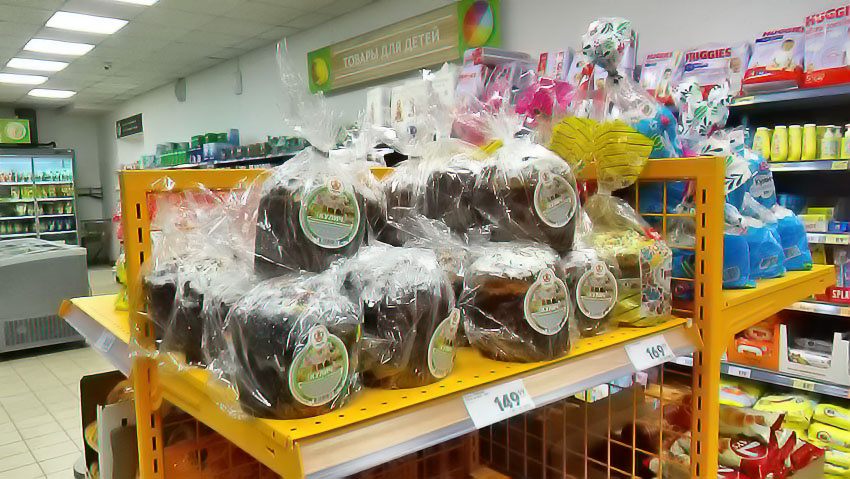 Сегодня, 13 апреля, в Камышине поступили в продажу пасхальные угощения. Самые скромные куличи продаются в диапазоне цен от 150-160 рублей.
