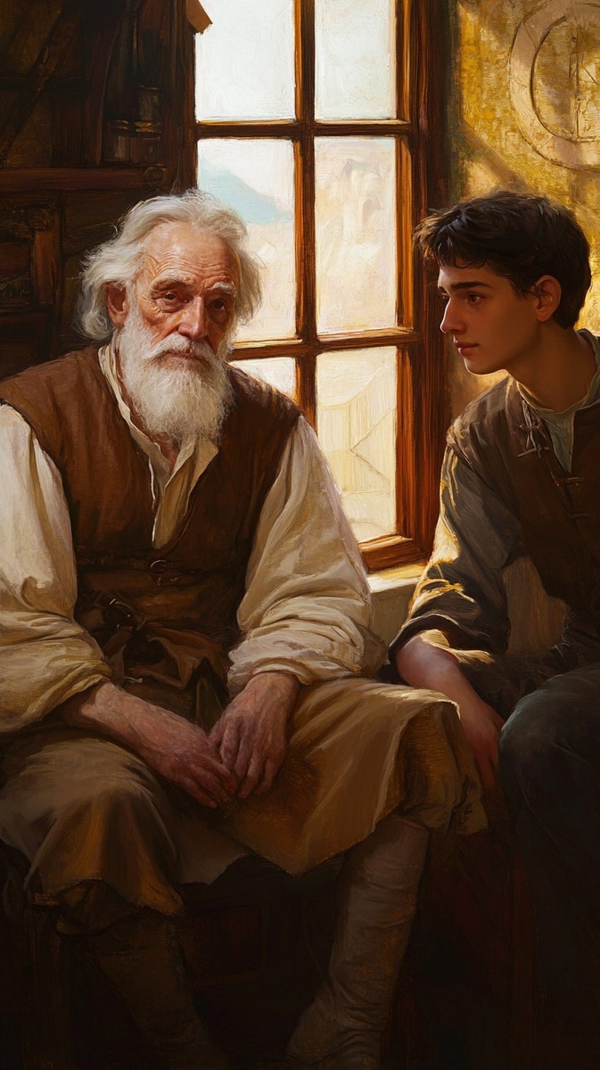 Создано на основе запроса: An elderly Leonardo da Vinci sitting near a window, frail and thoughtful, warm sunlight casting long shadows, a gentle-faced young man beside him, Renaissance interior, detailed realism, cinematic mood --- Автоперевод: Пожилой Леонардо да Винчи, сидящий возле окна, хрупкий и вдумчивый, теплый солнечный свет, бросающий длинные тени, молодой человек с нежным лицом, интерьер Ренессанса, детальный реализм, кинематографическое настроение Круто получилось? 🤔 https://dzen.ru/id/65c0c65c86e4f837c27b24d7 #ИИ #AI #нейросеть #midjourney #art