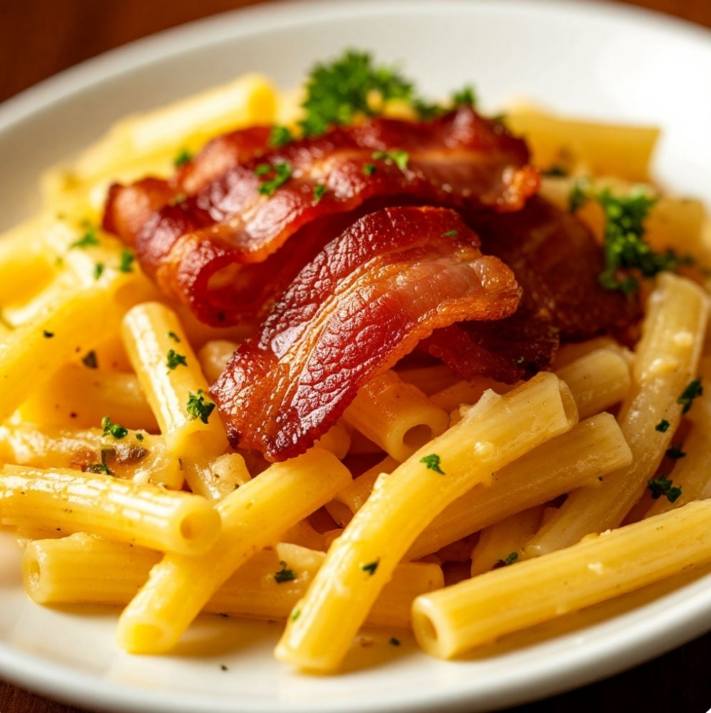 Паста с беконом – это простое и вкусное блюдо, которое можно приготовить за считанные минуты. Для этого вам понадобятся следующие ингредиенты: - 150 г пасты (спагетти, феттучини или другой вид пасты на ваш выбор) - 200 г бекона - 3-4 зубчика чеснока - Соль и перец по вкусу - Оливковое масло для жарки Приготовление: 1. Нарежьте бекон на кусочки и обжарьте его на оливковом масле до золотистого цвета. 2. Добавьте к бекону мелко нарезанный чеснок и обжаривайте еще 2-3 минуты. 3. Сварите пасту в подсоленной воде до готовности. 4. Слейте воду из пасты и добавьте ее к бекону с чесноком. Перемешайте все ингредиенты и подавайте на стол. Приятного аппетита!