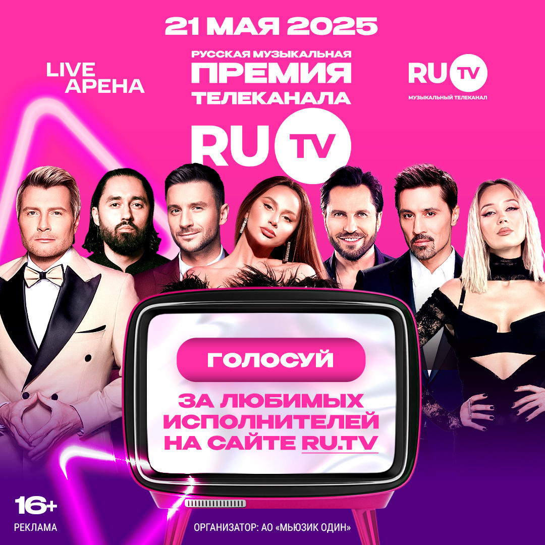 Что нужно сделать? Заходите на сайт RU.TV и голосуйте за любимых артистов в предложенных номинациях! Ваши голоса определят ход музыкальной истории! Грандиозный финал пройдет 21 мая в LIVE АРЕНЕ. В этот день вся страна узнает имена победителей! Не упустите шанс поддержать любимых артистов! Ссылка на голосование на сайте RU.TV