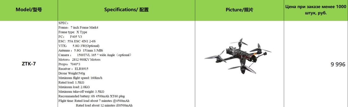В чат зашел производитель китайских дронов, говорит правильные вещи. Выкладываю выдержки из его прайса - указываю максимальную цену с завода по текущему курсу, может кому интересно будет как ориентир Часть 1. FPV дроны Перезалив, т.к. цена всё-таки была в долларах, а не юанях