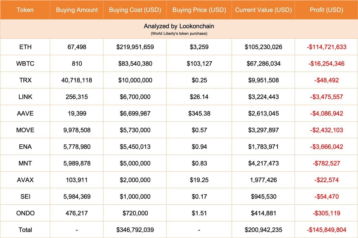Компания семьи Трампа — World Liberty Financial — находится в просадке суммарно на $145 млн