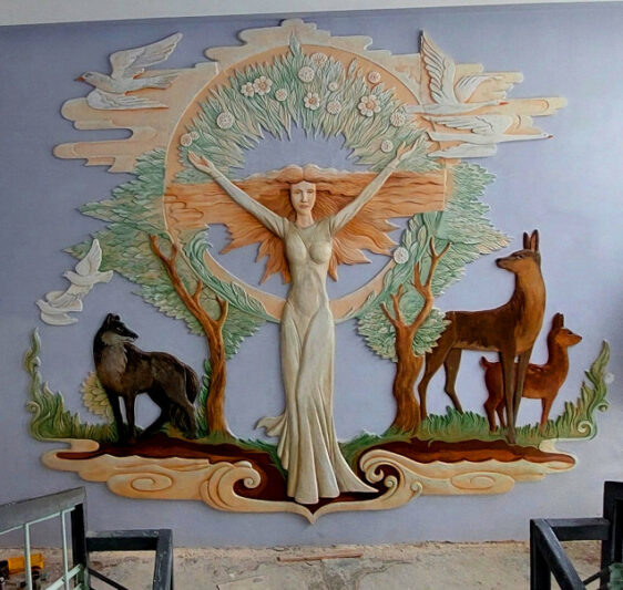 Эта школа в пятом микрорайоне была открыта 1 сентября 1985 года, поэтому в этом году она отпразднует не только 40-летний юбилей, но и полное обновление. Попутно у выпускников возникал вопрос: сохранят ли декоративный барельеф, который запомнилась многим? Учреждение образование с момента открытия имело экологическую направленность, поэтому в первые же годы на пришкольной территории был разбит дендропарк, включавший 37 пород деревьев и кустарников. Многие из них сохранились до сих пор и создают здесь прекрасную атмосферу «зелёного оазиса» посреди городской застройки. Учитывая экологическую составляющую, на стене в межэтажном пространстве была изображена Мать-Природа в виде раскинувшей руки прекрасной женщины. Её окружают деревья, цветущие луга, птицы и звери.
