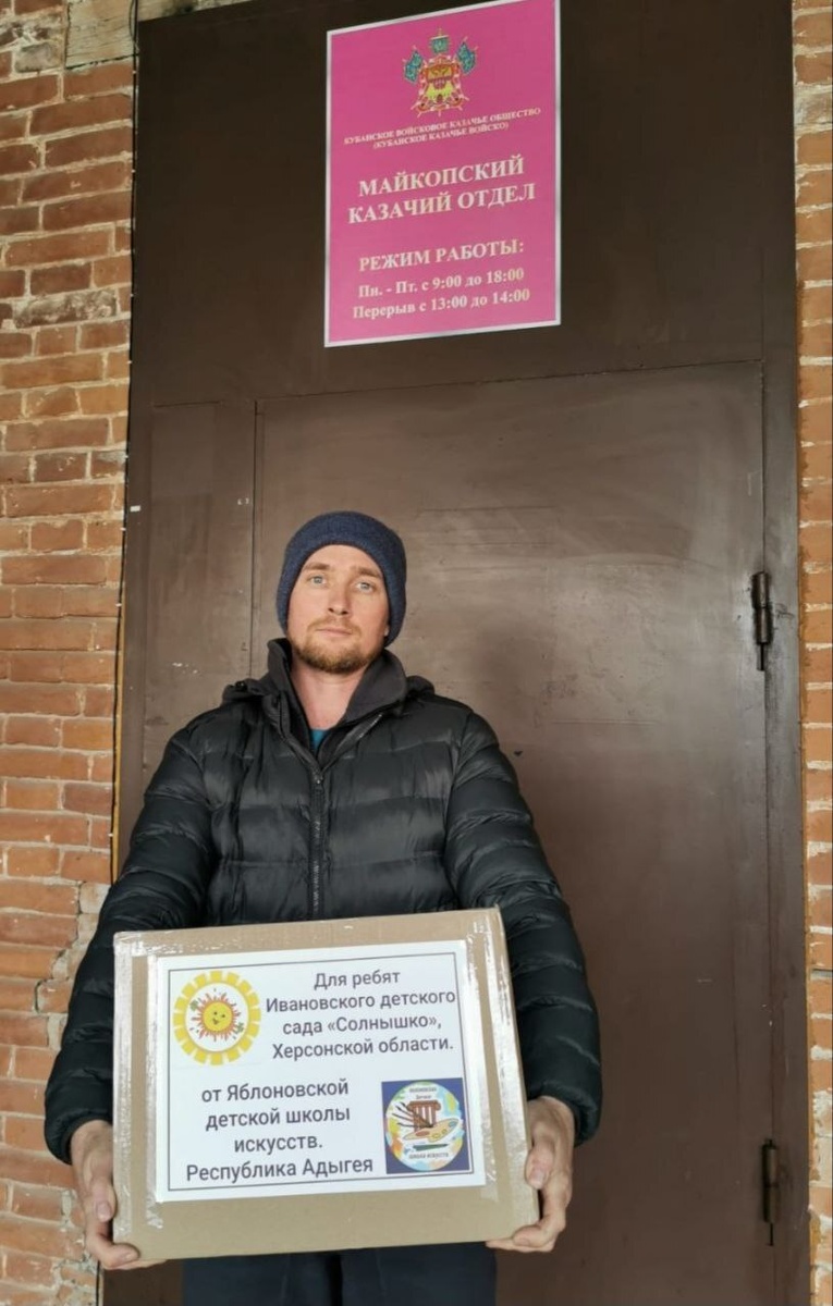 12 апреля заведующий художественным отделением ГБО ДО РА "Яблоновская ДШИ" Артищук Артём Николаевич передал Майкопскому казачьему отделу