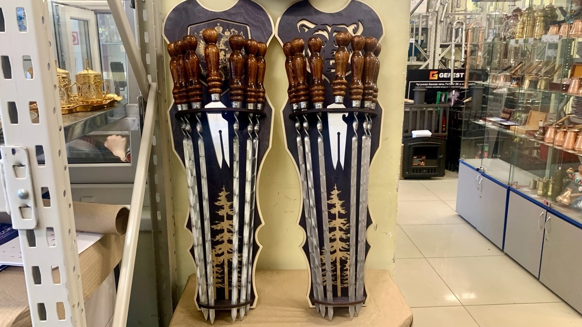 👉 Эти подвесные наборы, выполненные в виде благородного щита, станут не только функциональным аксессуаром, но и эффектным украшением вашего пространства для барбекю. В самом сердце каждого набора – искусно вырезанный из дерева щит, служащий надежным держателем для шести шампуров. Каждый шампур и нож-вилка оснащены удобной деревянной ручкой. Рабочая часть шампуров и ножа выполнена из нержавеющей стали толщиной 3мм.