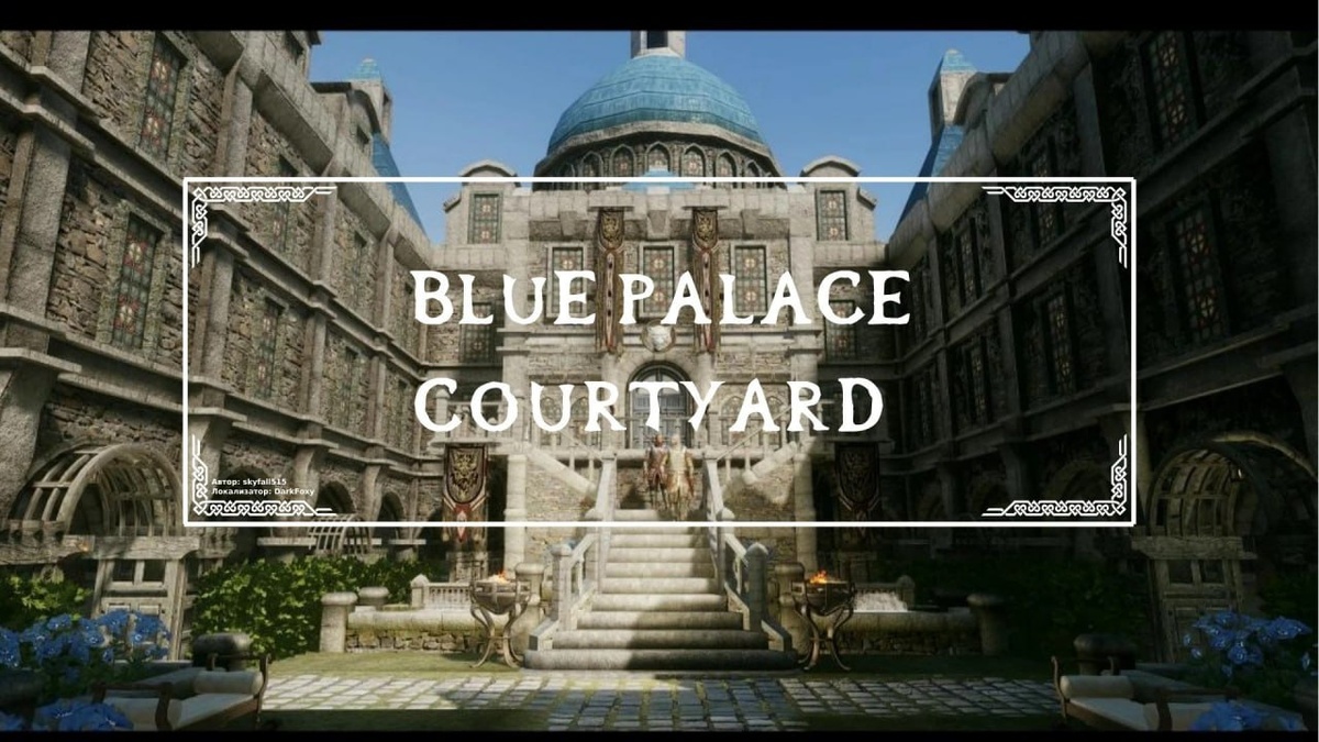 Внутренний двор Синего дворца от Skyfall (SE-AE) Полностью переделывает вход в Синий дворец — теперь вход величественный, возвышенный и центрированный (теперь он наконец-то соответствует внутреннему входу в дворец). Вход в Синий дворец больше не будет ощущаться как использование боковой двери для слуг, как в ванили. Вход во дворец теперь будет ощущаться важным. Погружение! :) Во дворе Синего дворца теперь есть большая дворцовая лестница, аккуратный ухоженный сад и зеленая зона. Все в планировке сада организовано и ухожено, как и положено королевскому дворцу. Особенности ✧ Вход в Синий дворец теперь центрирован и возвышен. ✧ Большая дворцовая лестница, ведущая ко входу. ✧ Симметричный, организованный и ухоженный двор. ✧ Красивые кусты самшита окружают территорию. ✧ Садовые ящики с цветами Голубого горноцвета. ✧ Подвесные баннеры и мотив головы волка в честь города Солитьюд. ✧ Два фонтана с колодцами желаний. ✧ Уютные уголки для чтения и уединения. ✧ Помечено ESL. ✧ Очищено с помощью